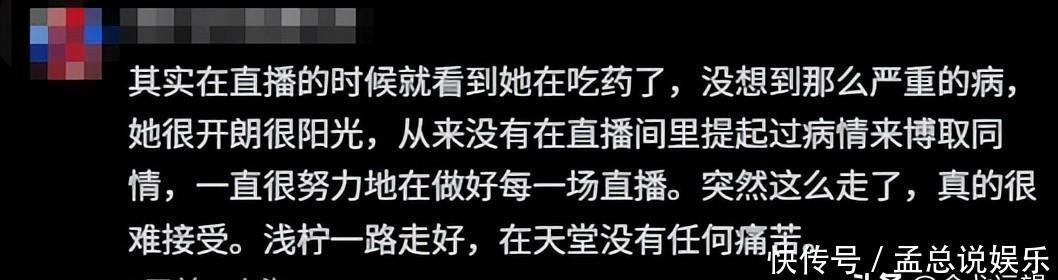 更有以前就相识的网友表示,其实在浅柠之前直播的时候就见过她一直在吃药了,但没人会想到居然是这么严重的病,她一直很开朗阳光。也让大家忽视了她其实生病的很严重了,还在直播,甚至从来没有因为自己生病而去博取大家的同情与怜悯,一直很努力的做好每一场直播。