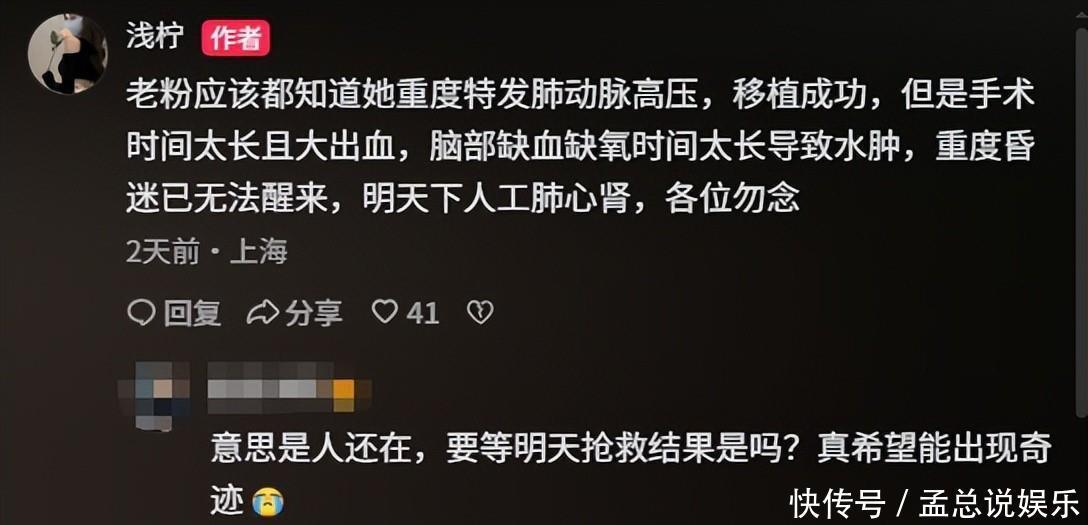 现代靶向药物治疗和综合管理可以显著改善症状、延缓疾病进展、提高生活质量,还可以通过肺移植和房间隔造口术等手术治疗。通过浅柠家人在评论区透露的,浅柠应该是接受了肺移植手术进行治疗,但没想到的是,原本移植的手术非常成功,但手术的时间过长。